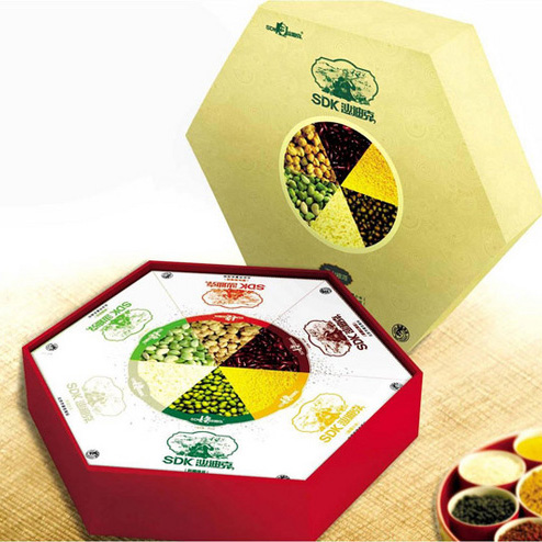 包裝盒視覺傳達設計的主色調,應根據內容物來考慮,尤其在畫面上出現對比色時,那就要注意二個對比色之間,面積大小不要太一致了,純度或明度也不宜太接近了,使其達到既有對比(包括色相、明度、純度對比),又有統一的感覺。有時在對比色之間不宜作減弱處理時,亦可采取用黑、白、金、銀、灰等中性色加以勾邊來處理,既保持了對比的色相對比,又達到了和諧統一的效果。