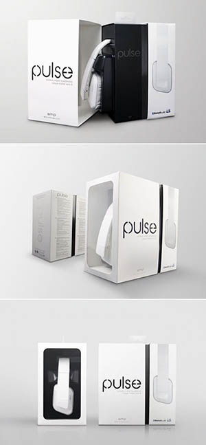 3. 這款耳機包裝盒體積較大,很容易給人以笨重的感覺,所以設計師利用特別的開蓋方式,以及分明的黑色和白色,將整體從視覺上分成了兩半,面積較大的一面印刷文字,較小的一面印刷耳機的一半實物圖,互相平衡。側面開窗,可以看到里面裝的耳機,減少了包裝盒的沉悶感。