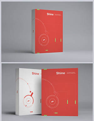 4. 與以上三款不同,這款包裝盒顏色使用了紅色和綠色,增添了時尚的氣息,耳機以簡筆輪廓的形式出現在正面,再加上線條和注釋,使真個耳機包裝盒融入了科技感。