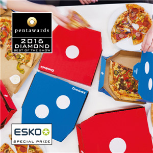 拿下最高榮譽鉆石獎的是 JKR 團隊為達美樂披薩設(shè)計的外賣包裝盒,拋棄了原先過多的元素,只留下具有辨識度的藍色和紅色的標識,搭配醒目的白色圓點,充分表現(xiàn)了 LESS IS MORE 的理念。