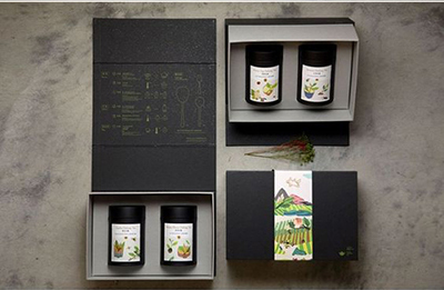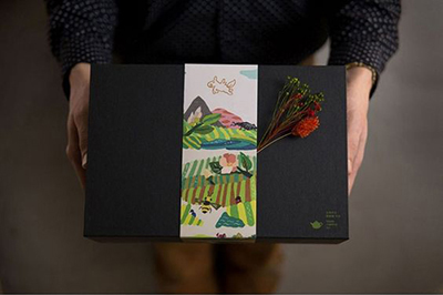 ? ? ? 外包裝盒極具質感的黑色背景上,是顏色豐富而又清新的茶葉產(chǎn)地風景繪畫,呈現(xiàn)出了與眾不同的設計風格,既有現(xiàn)代感,又不失穩(wěn)重。