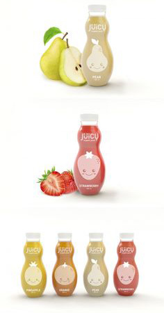 ? ? 另外這款 飲料瓶設(shè)計(jì) 中,采用了葫蘆形的瓶型,搭配卡通化的水果形象,整體風(fēng)格非??蓯?。